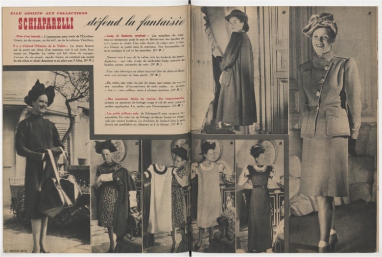 Elsa Schiaparelli returns to her Couture House in July and presents a new collection in September. She participates in the Théâtre de la Mode exhibition with the goal of relaunching Haute Couture in France.