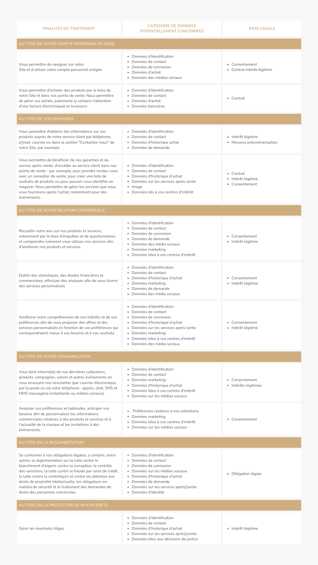 base de notre relation contractuelle, d’une obligation légale, de notre intérêt légitime ou de votre